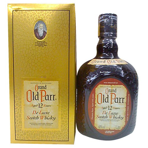 O Grand Old Parr é um uísque 12 anos blended, que é tão bom se não melhor do que qualquer outro no mercado de uísques do tipo blended. E a apresentação é totalmente original, ele geralmente é vendido em uma caixa dourada e sempre em um frasco quadrado marrom com uma textura interessante do lado de fora